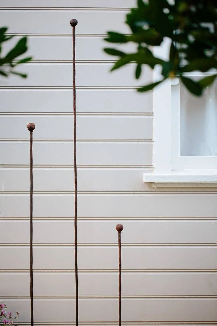 Handcrafted, enduring, functional stakes & hooks made from Australian steel. The stakes are a sculptural feature to support and climb plants on, while the hooks are perfect for hanging lanterns, plants, garden implements or even wedding bouquets!